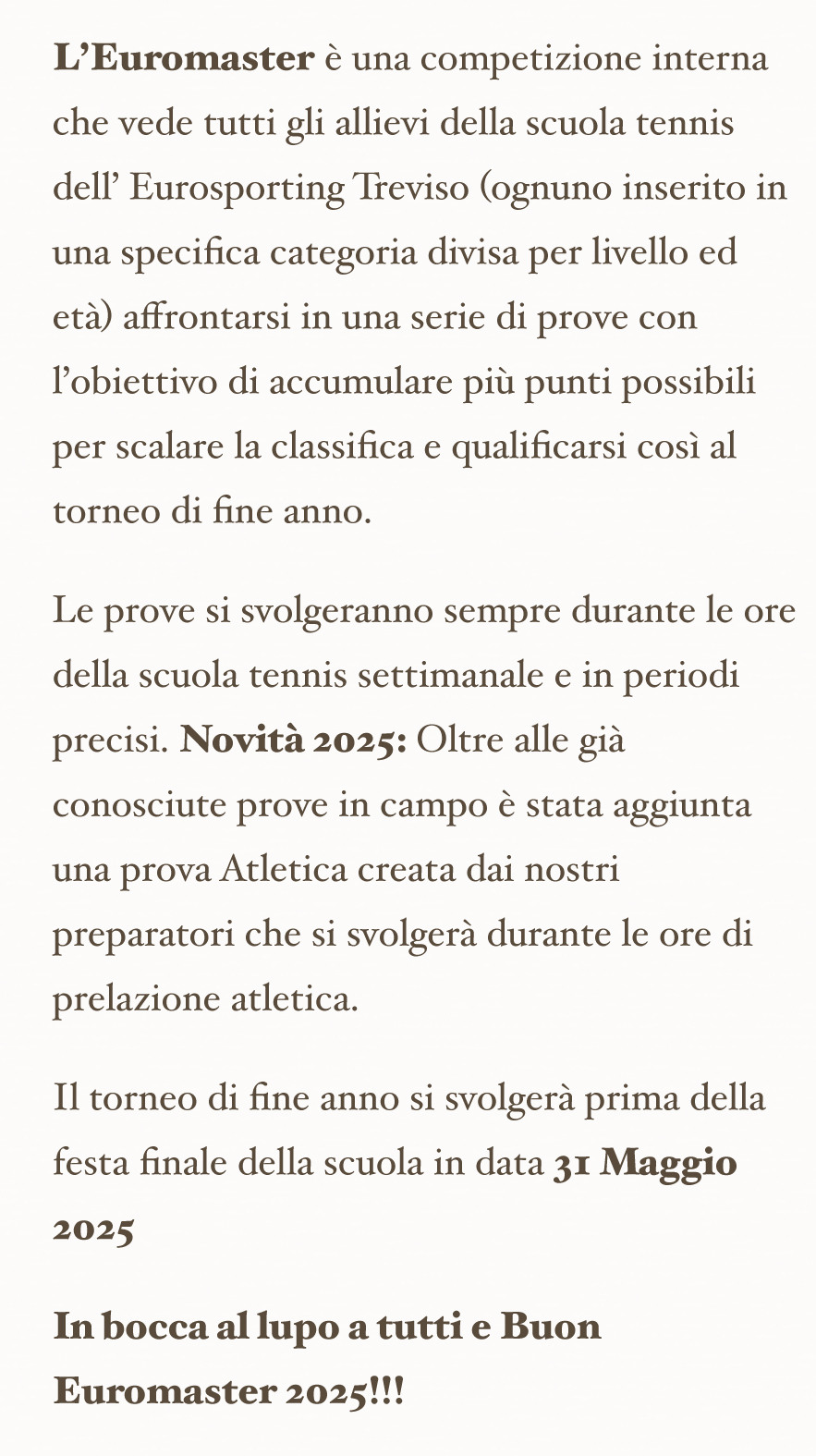 Questa mail vi è stata inviata in quanto il tuo indirizzo è inserito nel database di Euro Sporting in rispetto al D. Lgs. N. 196/2003.